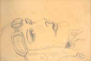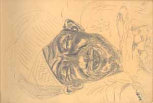 Blatt 8 Seite 16 / Blatt 9, Seite 17; Porträt eines Mannes mit Brille, Flöte spielend ("Opa")