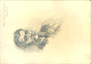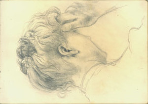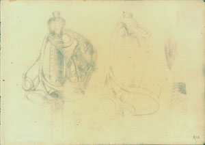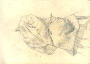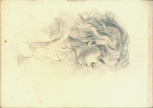 Seite 56 ; (Porträt einer jungen Frau) / Vorsatzpapier des Rückdeckels hinten; (Junge Frau, Handskizzen)