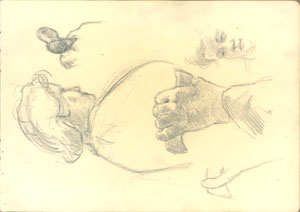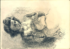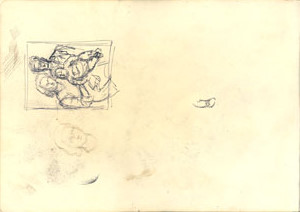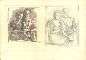 Seite 14 (Selbstbildnis mit Frau und Kind) in Tusche und Bleistift / Seite 15 (Mantel)