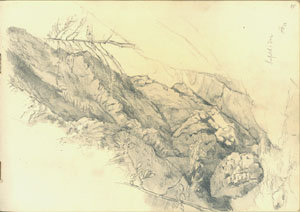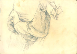 umfaßt ca. den Zeitraum zwischen 1940 bis 1944. Es beinhaltet Zeichnungen in Bleistift sofern nicht anders vermerkt. Es ist 29,7 x 19,0 cm (DIN A4) groß.