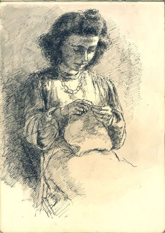 Seite 13 (Porträt A.A. beim Nähen)