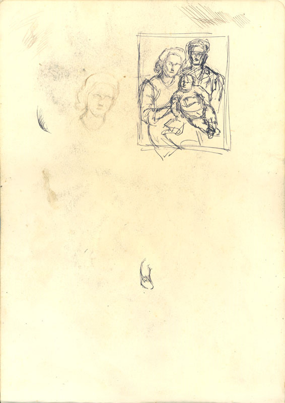 Seite 14 (Selbstbildnis mit Frau und Kind) in Tusche und Bleistift