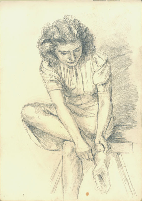 Seite 53 (Porträt von A.A. beim Strümpfe anziehen)